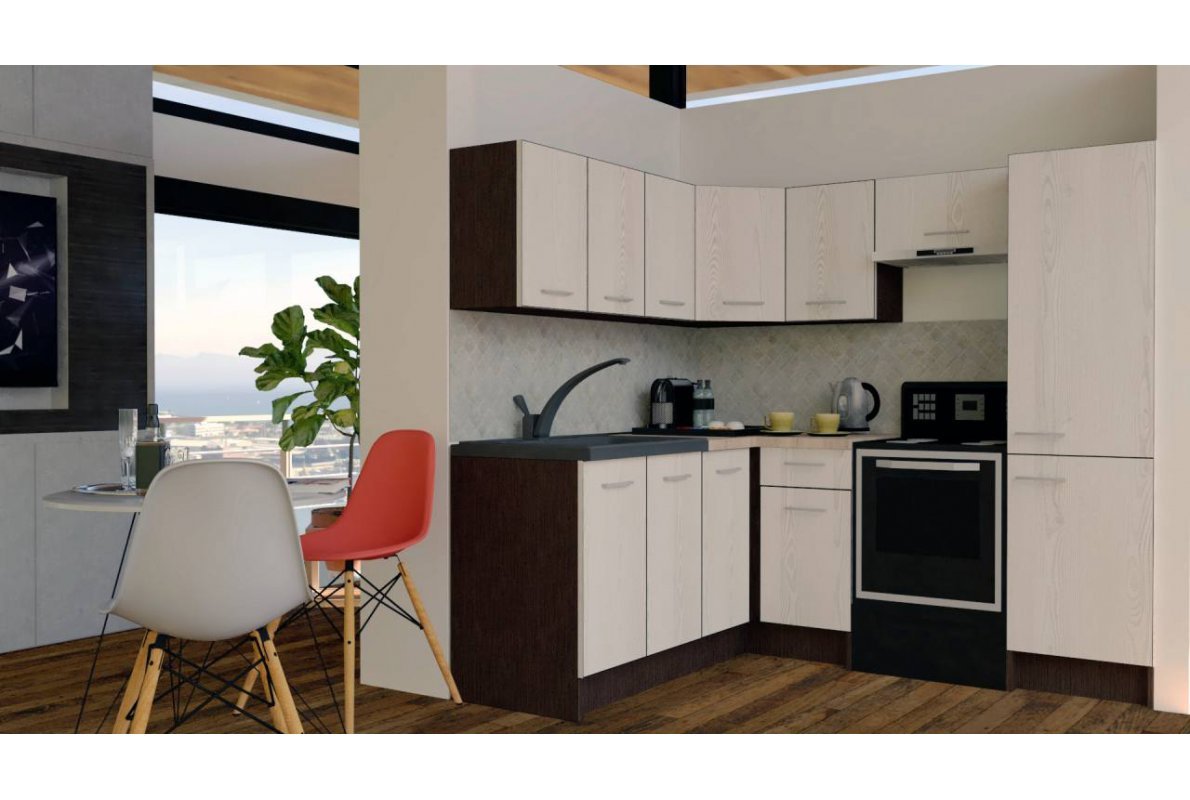 De ce sa alegi acest produs ? | Setul de bucatarie de colt Gena New 8 se recomanda prin raportul pret calitate in favoarea clientului. Setul are lungimea de 180 cm stanga si 210 cm dreapta si cuprinde 9 module care pot fi dispuse independent. |