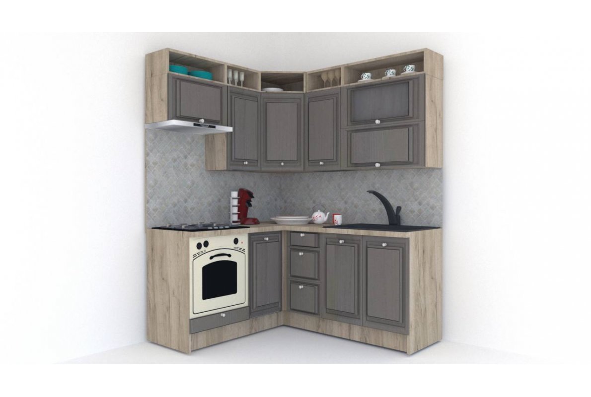 | Materiale folosite | - fronturile sunt realizate din MDF cu grosimea de 16 mm; - carcase realizate din PAL; - blat termorezistent nedecupat cu grosimea de 38 mm pentru corpurile inferioare; - decuparea blatului pentru incorporarea plitei si chiuvetei se face de catre client. |