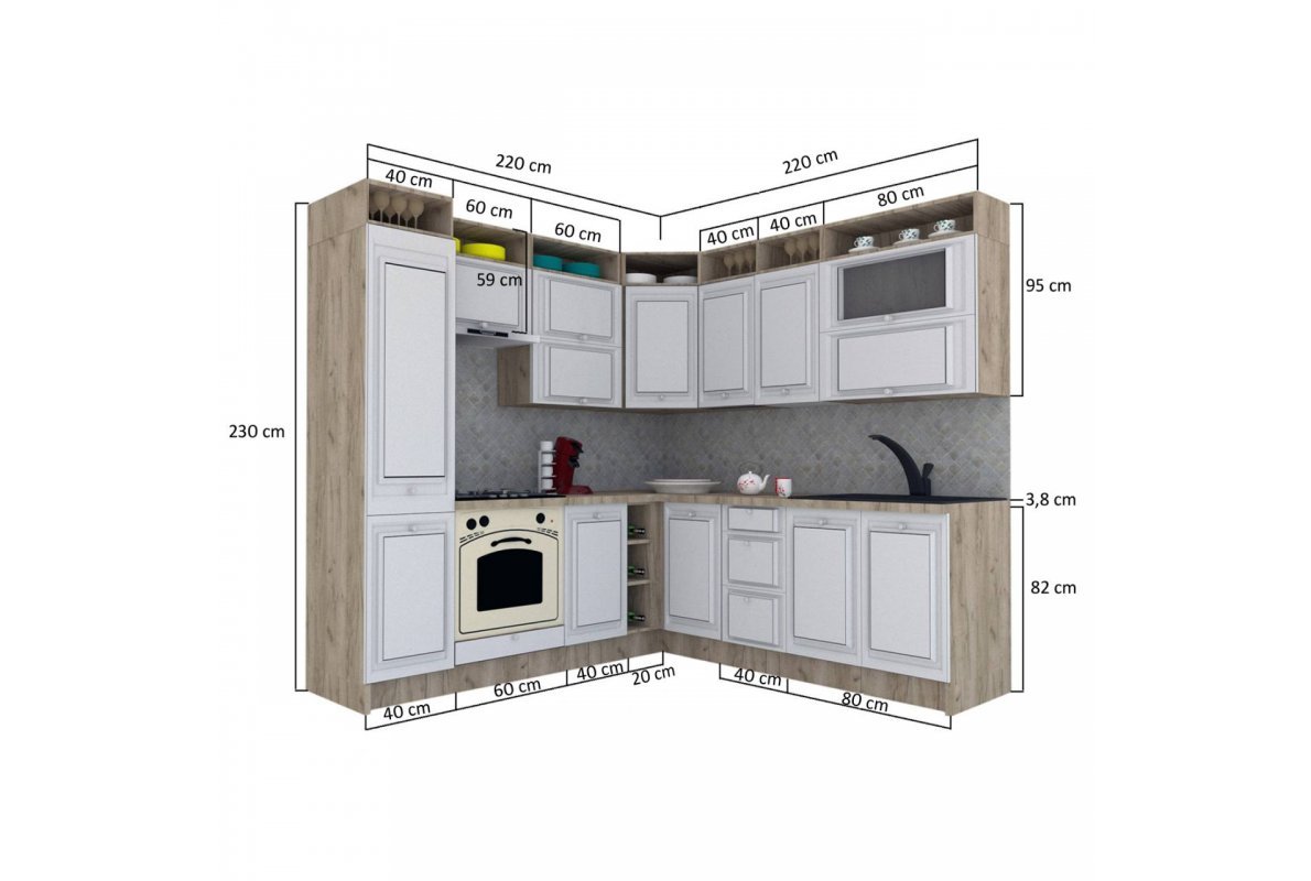 | Dimensiuni | Daca spatiul unde vreti sa organizati bucataria va permite o amenajare de colt, propunerea noastra este: Bucataria LEEA ART CORNER FRONT MDF ELBA 220-220 A ST. K002 / decor 246. Setul are lungimea de 220 cm stanga si 220 cm dreapta si cuprinde 13 module care pot fi dispuse independent. 1) Corpuri superioare ( L x H x A): - 1 x corp superior cu 2 usi cu deschidere verticala si raft deschis: 80 x 95 x 32 cm; - 2 x corp superior cu o usa de 72 cm si raft deschis: 40 x 95 x 32 cm; - 1 x corp suprapozabil de colt: 60 x 95 x 60 cm; - 1 x corp superior cu 2 usi cu deschidere verticala si raft deschis: 60 x 95 x 32 cm; - 1 x corp suprapozabil hota: 60 x 59 x 32 cm; 2) Corpuri inferioare ( L x H x A): - 1 x masca chiuveta: 80 x 82 x 52 cm; - 1 x dulap inferior cu 3 sertare: 40 x 82 x 52 cm; - 1 x dulap inferior de colt: 100 x 82 x 52 cm; - 1 x raft deschis: 20 x 82 x 50 cm; - 1 x dulap inferior cu 1 usa: 40 x 82 x 52 cm; - 1 x corp pentru cuptor incorporabil: 60 x 82 x 52 cm; 3) Corp Inalt DC_40/230 fr_1x713/396 si fr_1x1247/396: 40 x 230 x 58 cm - 1 bucata; 4) Blaturi (L x H x Ad): - 1 x blat nedecupat pentru corpurile inferioare: 220 x 3,8 x 60 cm; - 1 x blat nedecupat pentru corpurile inferioare: 120 x 3,8 x 60 cm. Dimensiuni (set din foto) ( L x h x A): 220-220 x 230 x 60 cm. Decuparea blatului pentru incorporarea plitei si chiuvetei se face de catre client. |