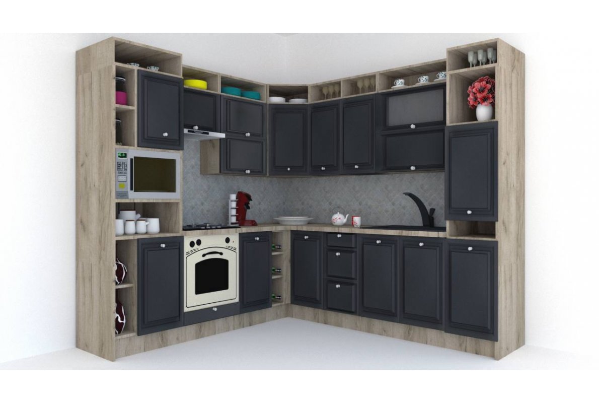 | De ce sa alegi acest produs ? | -fronturi din MDF 19 mm, cu rezistenta crescuta la zgarieturi, concepute pentru o folosinta indelungata; -blat termorezistent cu grosimea de 38 mm; -corpuri independente; -compartimentare diversa si functionala; -rafturi deschise; -design unic, modern, bazat pe cererea clientului. |