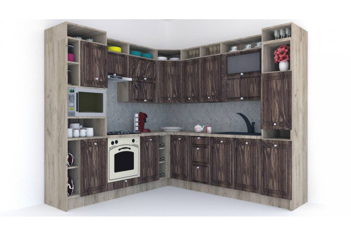 De ce sa alegi acest produs ? | -fronturi din MDF 19 mm, cu rezistenta crescuta la zgarieturi, concepute pentru o folosinta indelungata; -blat termorezistent cu grosimea de 38 mm; -corpuri independente; -compartimentare diversa si functionala; -rafturi deschise; -design unic, modern, bazat pe cererea clientului. |
