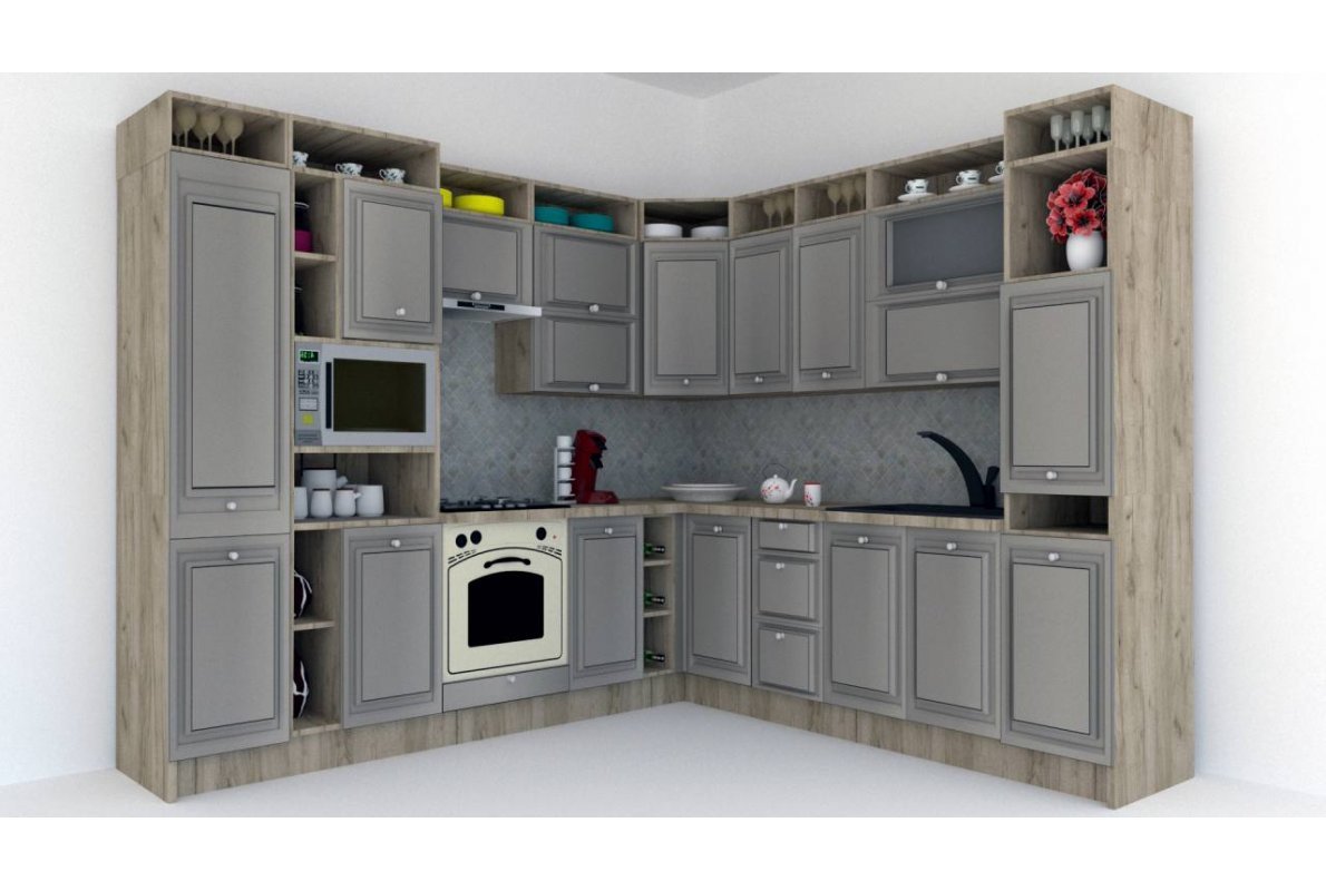 Materiale folosite | - fronturile sunt realizate din MDF cu grosimea de 19 mm; - carcase realizate din PAL; - blat termorezistent nedecupat cu grosimea de 38 mm pentru corpurile inferioare; - decuparea blatului pentru incorporarea plitei si chiuvetei se face de catre client. |