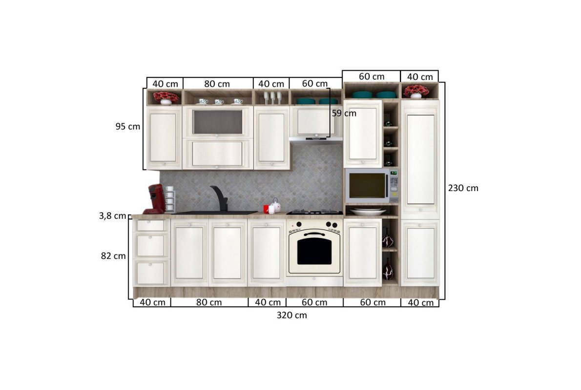Dimensiuni | Daca spatiul unde vreti sa organizati bucataria are un perete de 320 cm propunerea noastra este: Bucataria LEEA ART FRONT MDF PORTAL 320C K002 / decor 266. Setul are lungimea de 320 cm si cuprinde 10 module care pot fi dispuse independent. 1) Corpuri superioare ( L x H x A): - 2 x corp superior cu o usa de 72 cm si raft deschis: 40 x 95 x 32 cm; - 1 x corp suprapozabil hota: 60 x 59 x 32 cm; - 1 x corp superior cu 2 usi cu deschidere verticala si raft deschis: 80 x 95 x 32 cm; 2) Corpuri inferioare ( L x H x A): - 1 x dulap inferior cu 3 sertare: 40 x 82 x 52 cm; - 1 x masca chiuveta: 80 x 82 x 52 cm; - 1 x dulap inferior cu 1 usa: 40 x 82 x 52 cm; - 1 x corp pentru cuptor incorporabil: 60 x 82 x 52 cm; 3) Corp Inalt cu polite DP_60/230 fr_2x713/393: 60 x 230 x 58 cm; 4) Corp inalt DC_40/230 fr_1x713/396 si fr_1x1247/396: 40 x 230 x 58 cm. 5) Blaturi (L x H x Ad): - 1 x blat nedecupat pentru corpurile inferioare: 220 x 3,8 x 60 cm. Dimensiuni (set din foto) ( L x h x A): 320 x 230 x 60 cm. Decuparea blatului pentru incorporarea plitei si chiuvetei se face de catre client. |