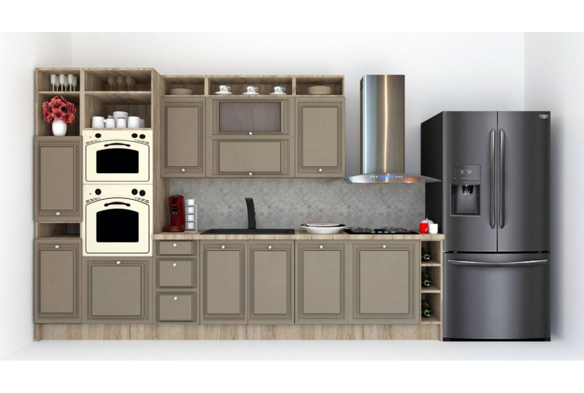 | Dimensiuni | Daca spatiul unde vreti sa organizati bucataria are un perete de 320 cm propunerea noastra este: Bucataria LEEA ART FRONT MDF ALAMO 340A K002 / decor 200. Setul are lungimea de 340 cm si cuprinde 10 module care pot fi dispuse independent. 1) Corpuri superioare ( L x H x A): - 2 x corp superior cu o usa de 72 cm si raft deschis: 40 x 95 x 32 cm; - 1 x corp superior cu 2 usi cu deschidere verticala si raft deschis: 80 x 95 x 32 cm; 2) Corpuri inferioare ( L x H x A): - 1 x raft deschis: 20 x 82 x 50 cm; - 1 x dulap inferior cu 1 usa: 60 x 82 x 52 cm; - 1 x dulap inferior cu 1 usa: 40 x 82 x 52 cm; - 1 x masca chiuveta: 80 x 82 x 52 cm; - 1 x dulap inferior cu 3 sertare: 40 x 82 x 52 cm; 3) Corp Inalt cu incorporare cuptor la semi-inaltime DP_60/230 fr_570/596: 60 x 230 x 58 cm; 4) Corp inalt DC_40/230 fr_2x713/396: 40 x 230 x 58 cm. 5) Blaturi (L x H x Ad): - 1 x blat nedecupat pentru corpurile inferioare: 240 x 3,8 x 60 cm. Dimensiuni (set din foto) ( L x h x A): 340 x 230 x 60 cm. Decuparea blatului pentru incorporarea plitei si chiuvetei se face de catre client. |