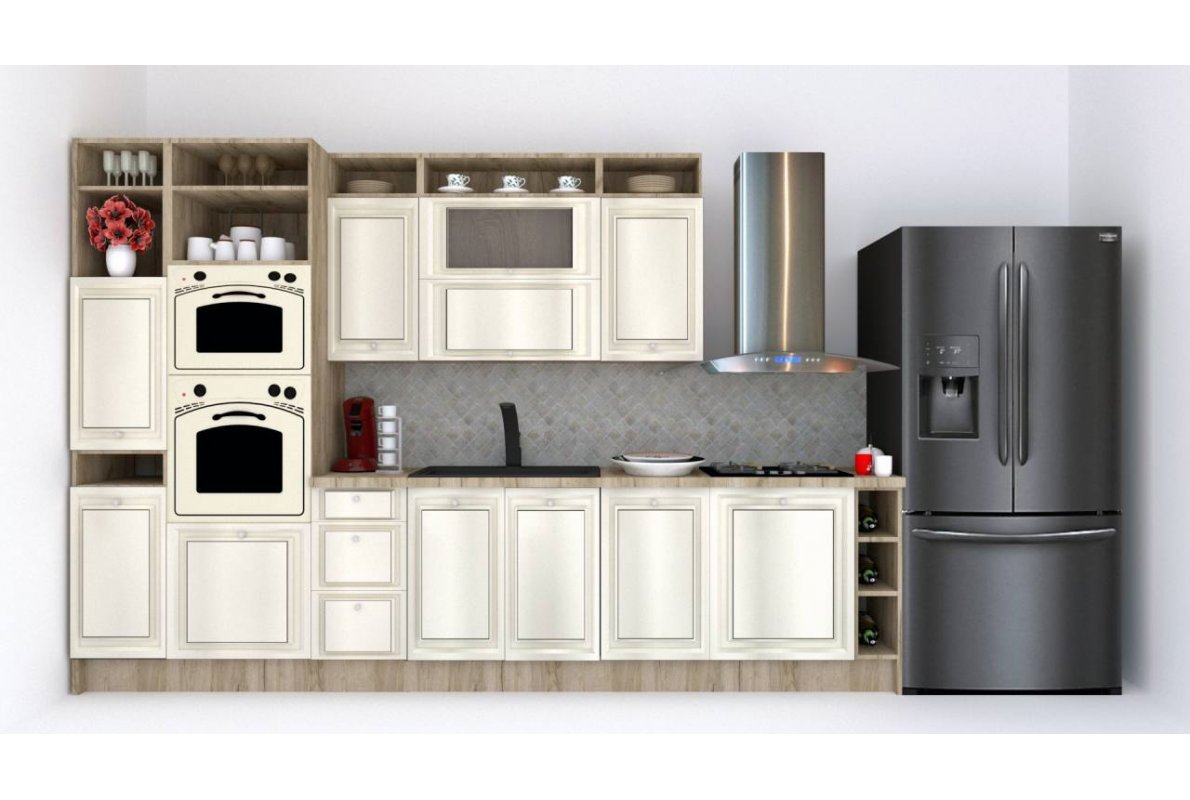 | Functionalitate | Mobilier pentru bucatarie, cu fronturi din MDF. Puteti vizita pagina de electrocasnice pentru a va putea alege electrocasnicele necesare in bucatarie ( plita, cuptor, hota, chiuveta, baterie , masina de spalat vase, masina de spalat rufe, frigider, cuptor cu microunde,etc ) Nota: - Accesoriile decorative, cuptorul, plita, hota, chiuveta si bateria sunt disponibile ca optiuni. Nu sunt incluse in pret! Pretul se refera strict la mobilier. |