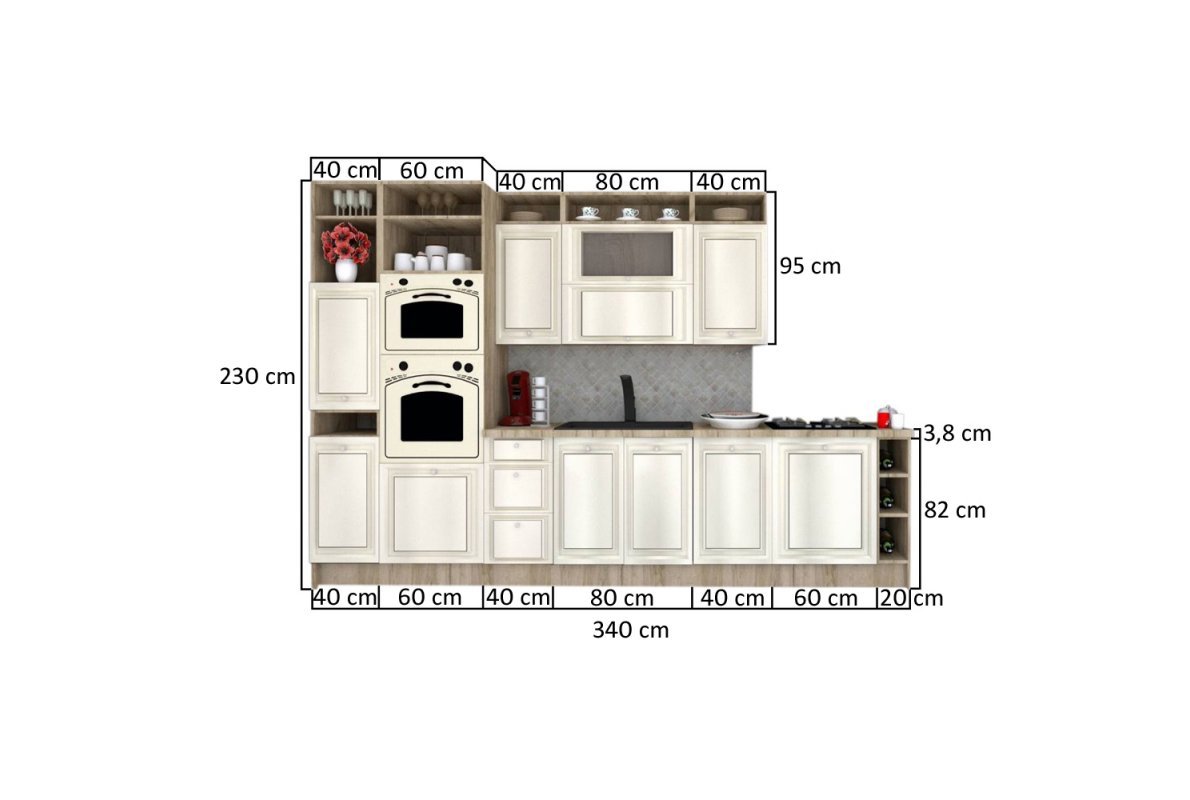 | Dimensiuni | Daca spatiul unde vreti sa organizati bucataria are un perete de 320 cm propunerea noastra este: Bucataria LEEA ART FRONT MDF STILE 340A K002 / decor 246. Setul are lungimea de 340 cm si cuprinde 10 module care pot fi dispuse independent. 1) Corpuri superioare ( L x H x A): - 2 x corp superior cu o usa de 72 cm si raft deschis: 40 x 95 x 32 cm; - 1 x corp superior cu 2 usi cu deschidere verticala si raft deschis: 80 x 95 x 32 cm; 2) Corpuri inferioare ( L x H x A): - 1 x raft deschis: 20 x 82 x 50 cm; - 1 x dulap inferior cu 1 usa: 60 x 82 x 52 cm; - 1 x dulap inferior cu 1 usa: 40 x 82 x 52 cm; - 1 x masca chiuveta: 80 x 82 x 52 cm; - 1 x dulap inferior cu 3 sertare: 40 x 82 x 52 cm; 3) Corp Inalt cu incorporare cuptor la semi-inaltime DP_60/230 fr_570/596: 60 x 230 x 58 cm; 4) Corp inalt DC_40/230 fr_2x713/396: 40 x 230 x 58 cm. 5) Blaturi (L x H x Ad): - 1 x blat nedecupat pentru corpurile inferioare: 240 x 3,8 x 60 cm. Dimensiuni (set din foto) ( L x h x A): 340 x 230 x 60 cm. Decuparea blatului pentru incorporarea plitei si chiuvetei se face de catre client. |