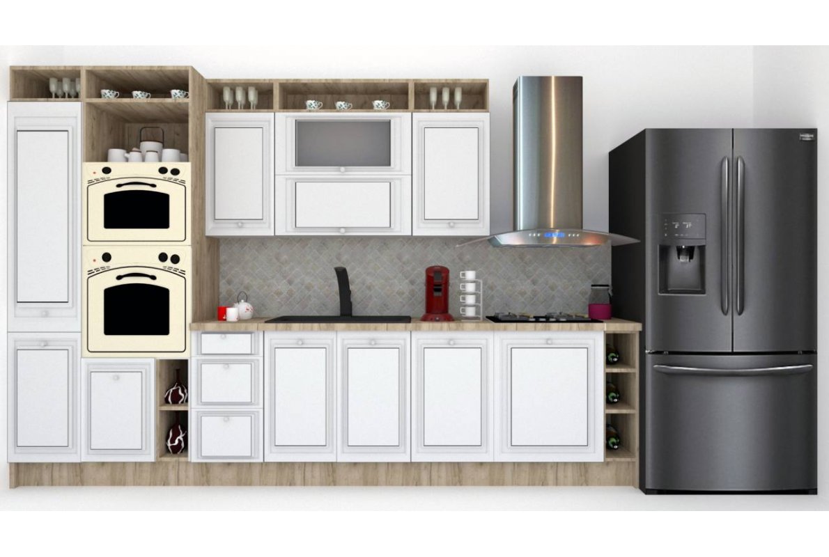 | Materiale folosite | - fronturile sunt realizate din MDF cu grosimea de 19 mm; - carcase realizate din PAL; - blat termorezistent nedecupat cu grosimea de 38 mm pentru corpurile inferioare; - decuparea blatului pentru incorporarea plitei si chiuvetei se face de catre client. |