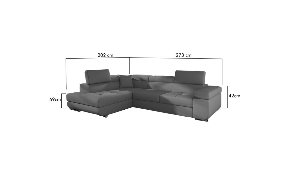 | De ce sa alegi acest produs ? | -coltar extensibil cu colt pe partea stanga; -tapiterie din stofa si piele ecologica; -este prevazut cu o lada de depozitare sub saltea; -tetiere reglabile. |