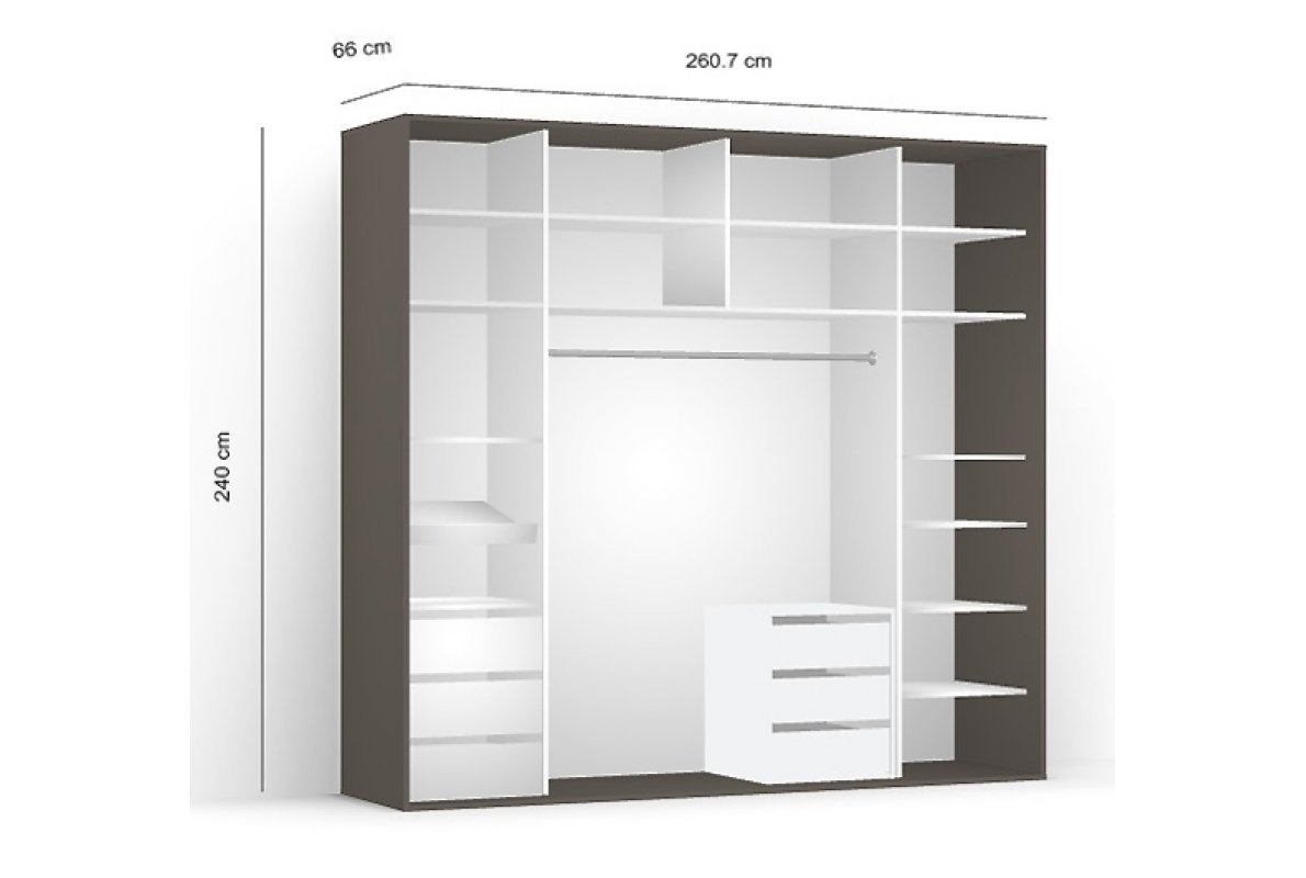 | Dimensiuni | Lăţime: 261 cm Inălţime: 240 cm Adâncime: 66 cm |
