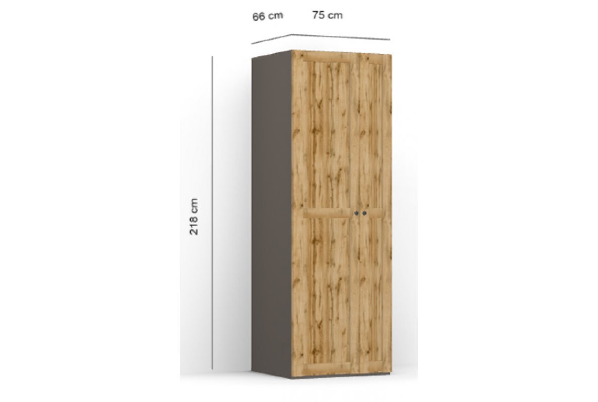 De ce sa alegi acest produs ? | Va intrebati cum sa va organizati hainele și accesoriile de moda? Dulapul Lex va va ajuta cu aceasta sarcina. In interiorul sau disponibil in 3 culori dab sonoma, alb si gri veti găsi rafturi de diferite inaltimi, care vă permit să depozitati pantaloni, prosoape, pantofi sau o geanta de mana. Bara de umerase va ajuta la organizarea colectiei cu rochii de petrecere. |