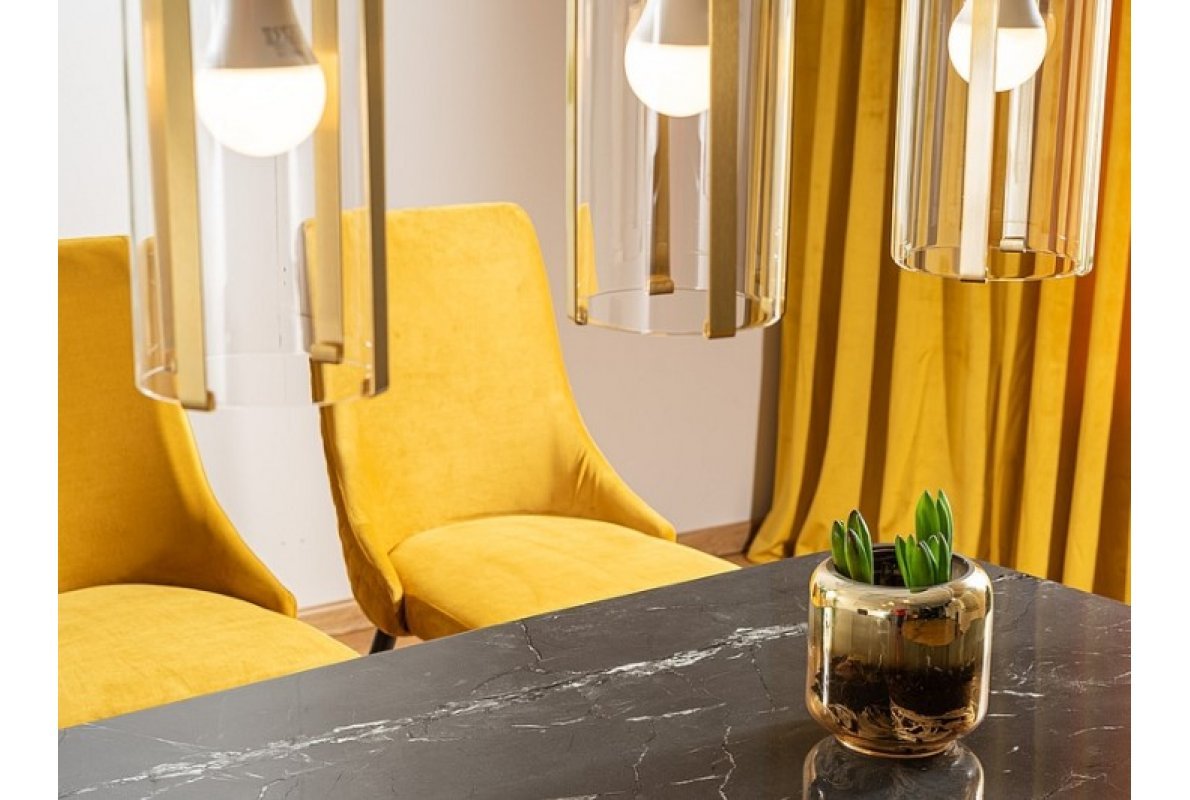 | Materiale folosite | -spătar si sezut tapițat cu tesatura de catifea matlasată; - cadru metalic |