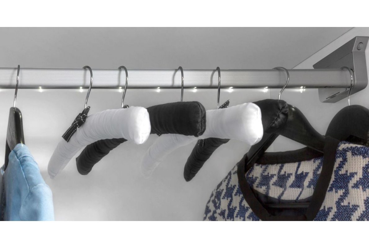 Suplimentar se pot comanda rafturi, bare metalice cu LED pentru umerase și cosuri de depozitare.