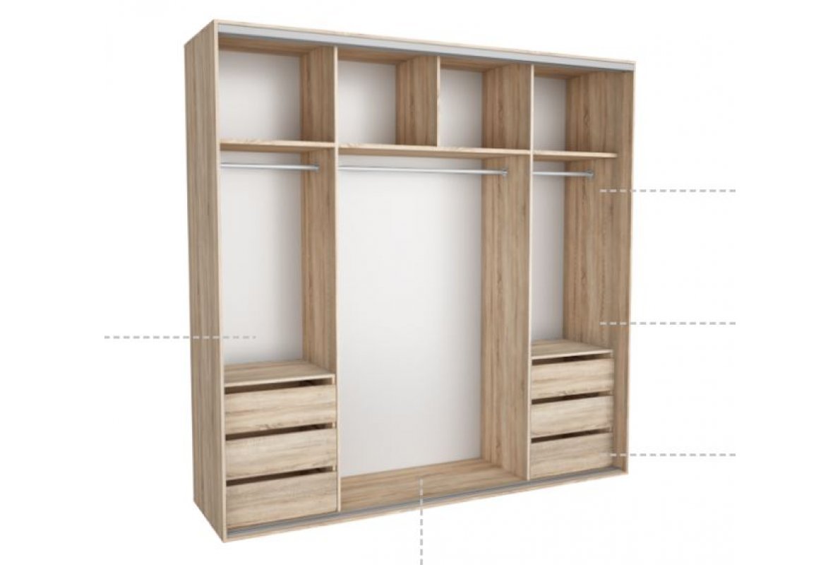 | Funcționalitate | Pentru a face un dulap mai functional, il poti dota cu un organizator, coș de rufe, cos pentru incaltaminte, tije luminoase pentru umerașe, suport pentru pantaloni si cravate. - Opțiunea oricărei configurații deschide multe posibilități pentru a organiza cabinetul în interior in functie de necesitatea fiecaruia. Colecția de dulap NADIR este o soluție practică pentru un dormitor modern, dressing și chiar un hol . - garderoba NADIR cu uși glisante este locul perfect pentru a stoca haine. Puteți utiliza rafturi, tije pentru umerase și o mulțime de spațiu pentru aranjament individual. |